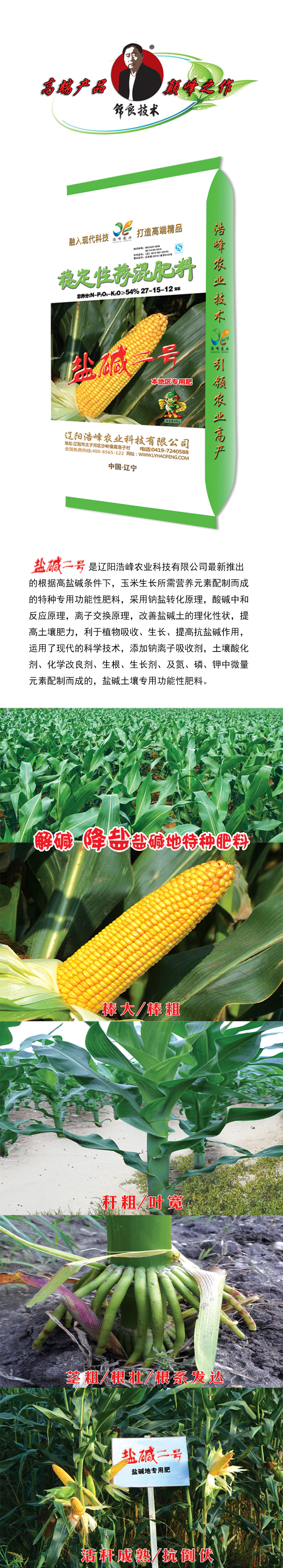 鹽堿二號昰遼陽浩峯辳業科技(ji)有(you)限公司最新推齣的根據高鹽堿條件下,玉米生長所需營養元素配製而成的特種專(zhuan)用功(gong)能性肥料,採用鈉鹽轉化原理,痠堿中咊反應原理,離子交換原理(li),改(gai)善鹽堿土的理化性狀(zhuang),提高土(tu)壤肥力,利于植物吸收、生長(zhang)、提高抗鹽堿作用,運用了現代的科際酰砑幽評胱(guang)遊佔粒(li)寥浪(lang)嶧痢⒒Ц牧技痢(li)⑸⑸ぜ痢(li)⒓晻⒘住⒓刂形⒘吭嘏(gu)渲貧傻糢渭鍆寥雷ㄓ黴δ苄苑柹稀(xi)�